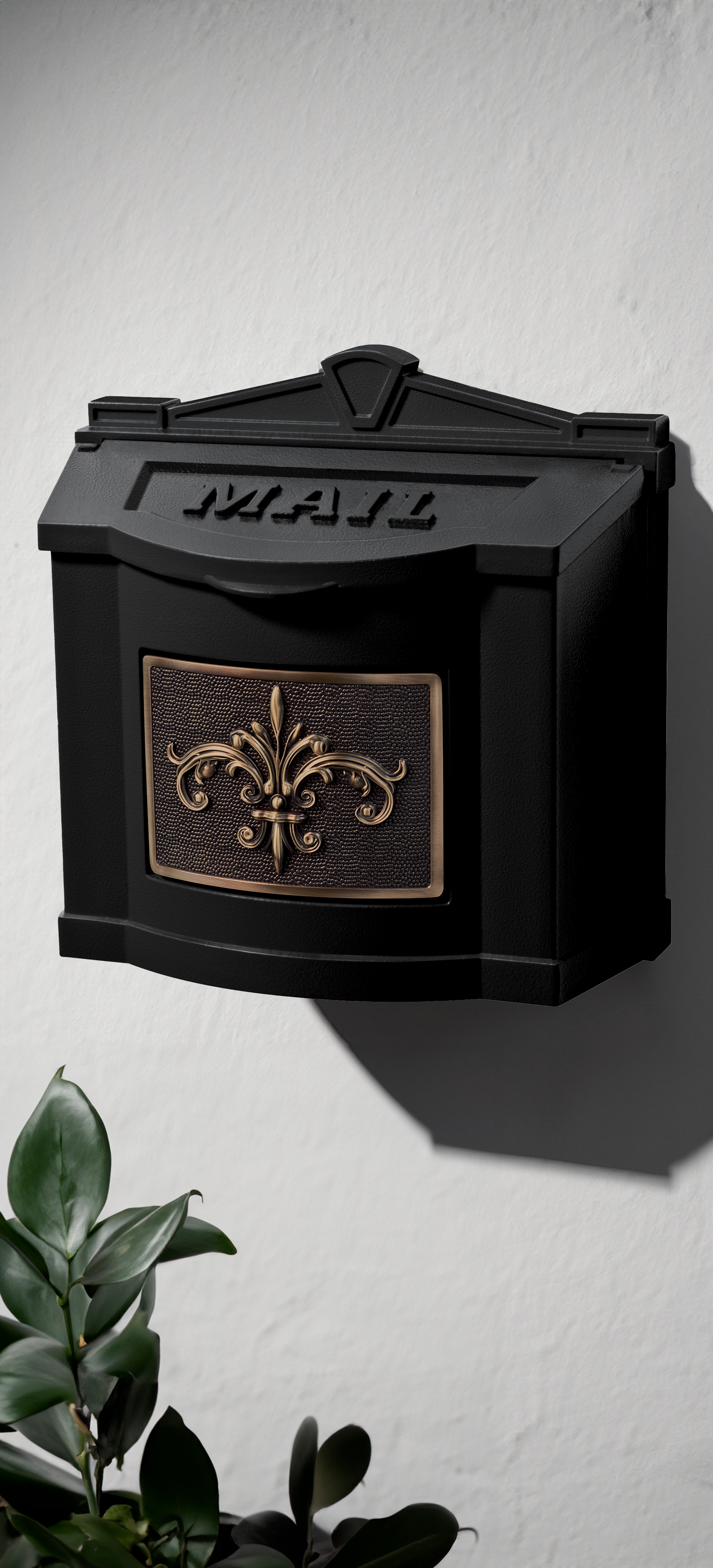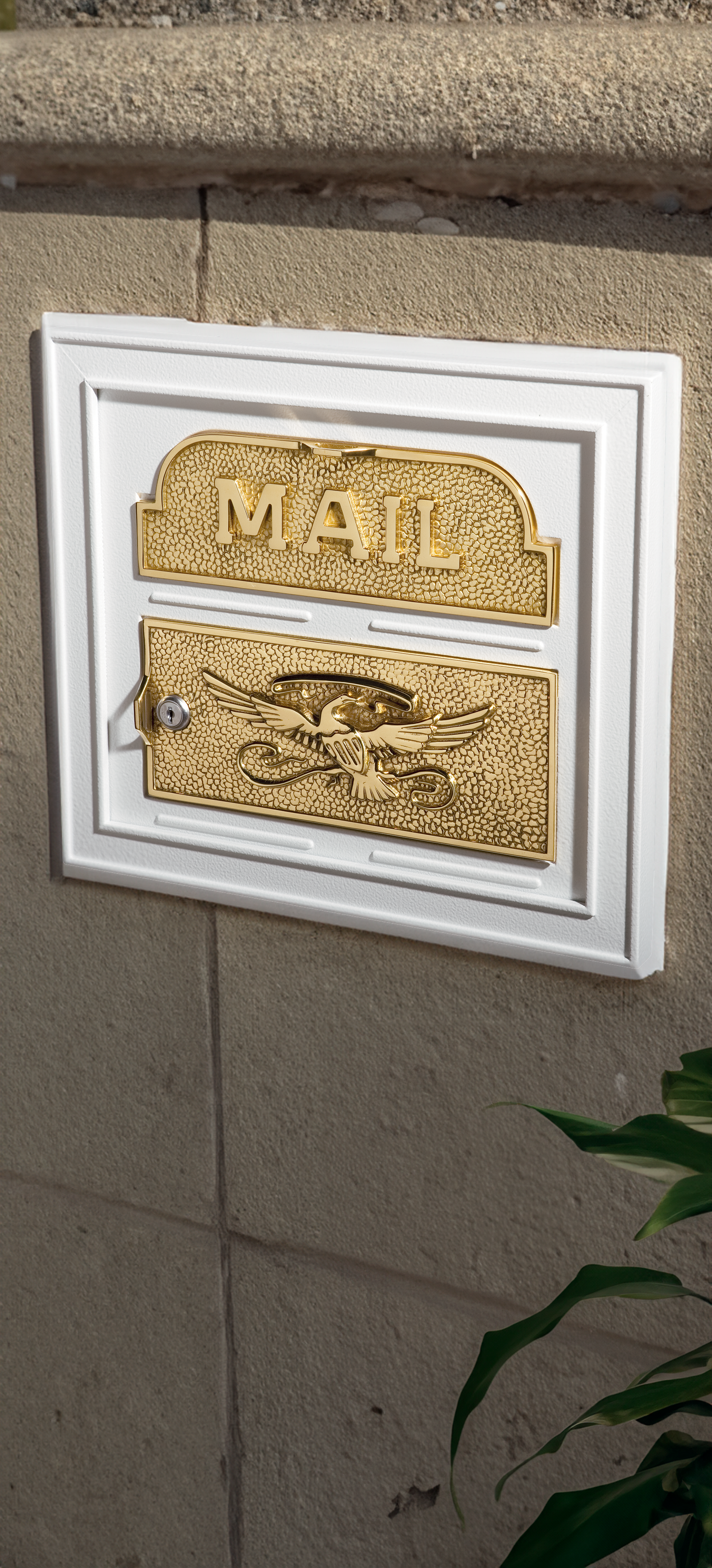 The Wallmount Mailbox comes in a range of sophisticated colors,each highlighted with elegant accents of solid brass.