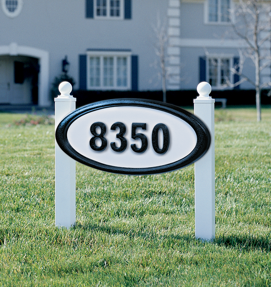 Welcome Guests with Sophistication: The Black & White HouseMark Plaque. The crisp white finish pops against the bold black accents, creating a modern statement. This plaque is crafted for lasting beauty and includes everything for easy installation. Make it a complete look! Add the Black & White HouseMark Post Kit (sold separately) for a stunning in-ground display.