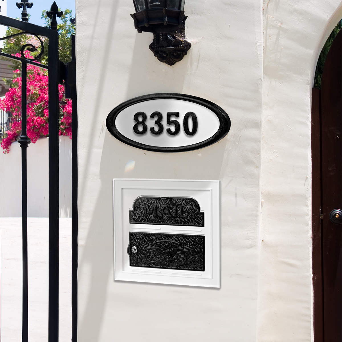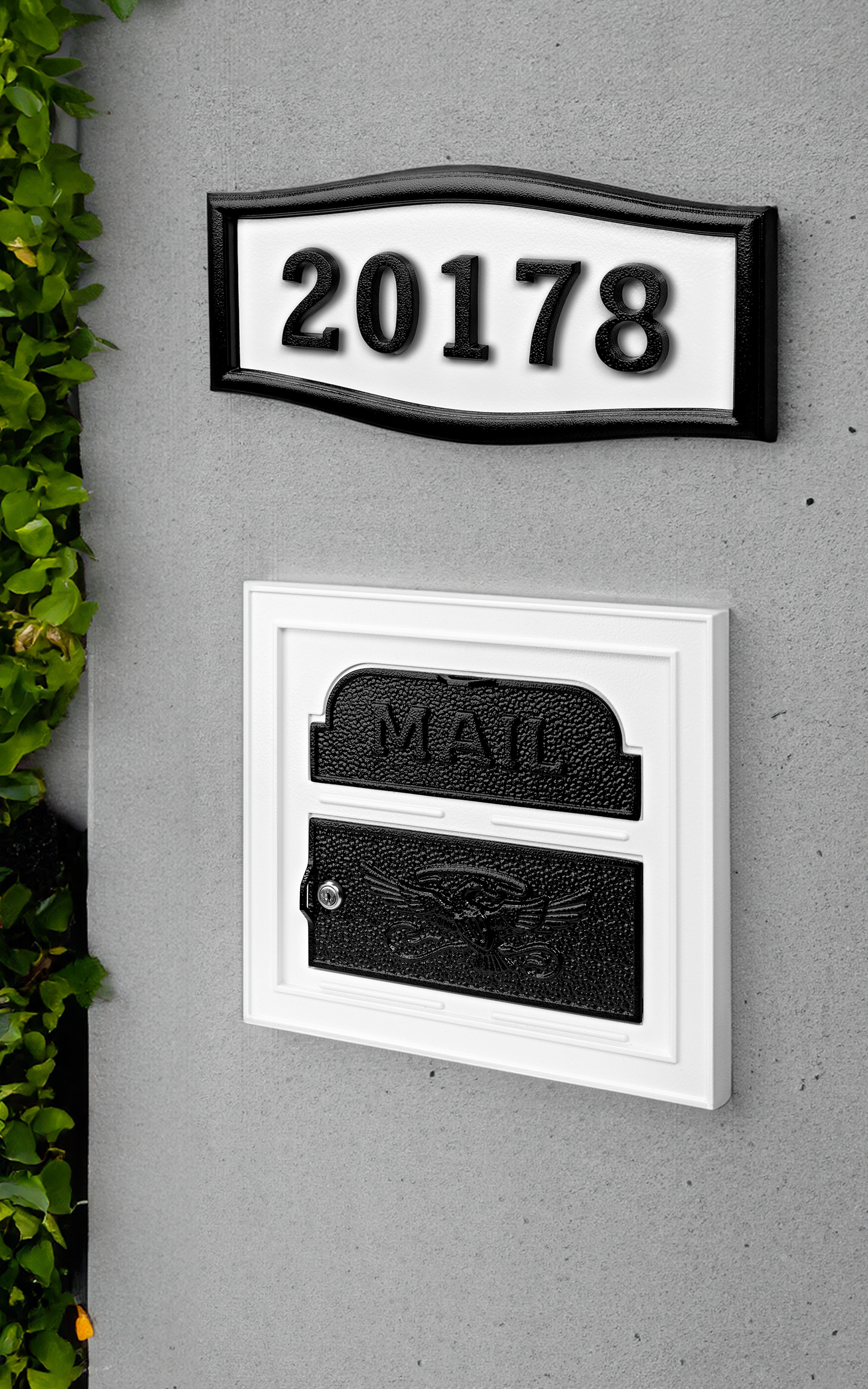 Complete your black & white masterpiece! The Limited Edition Black & White Classic Faceplate Insert beautifully complements your existing column or wall . This exclusive design, featuring a crisp white finish and bold black details, pairs perfectly with our Black & White Housemark Plaque (sold separately) for a cohesive and traditionally elegant entryway. Limited quantities available!