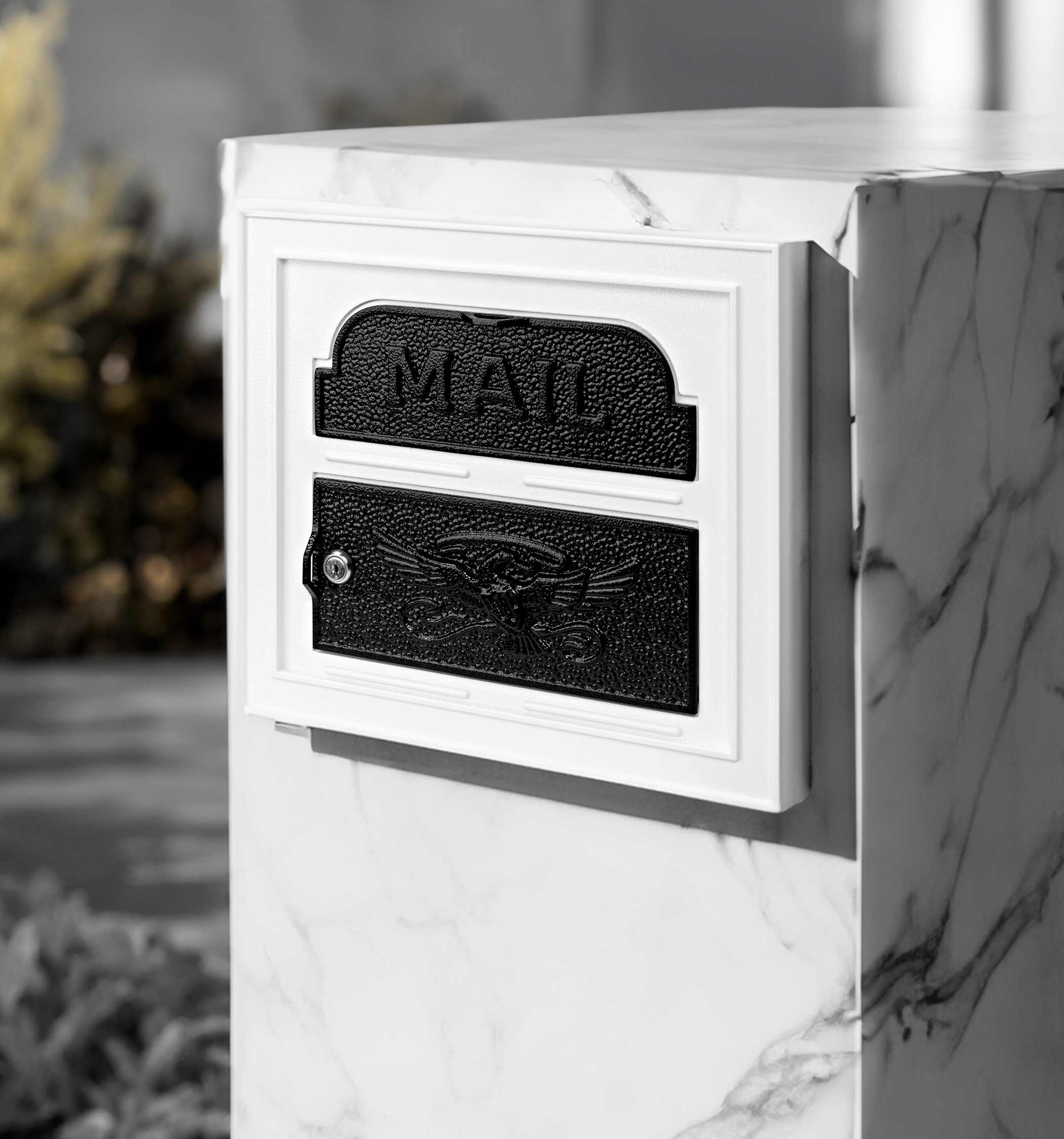 Experience enduring elegance with a touch of modern convenience. The Limited Edition Black & White Classic Faceplate Insert transforms your existing column or wall mount. This exclusive design features a crisp white finish accented with bold black details, creating a traditionally elegant statement. Enjoy the quiet ease of a magnetic closure for a smooth mail deposit, while the secure, key-operated locking door ensures your mail remains safe. Limited quantities available!