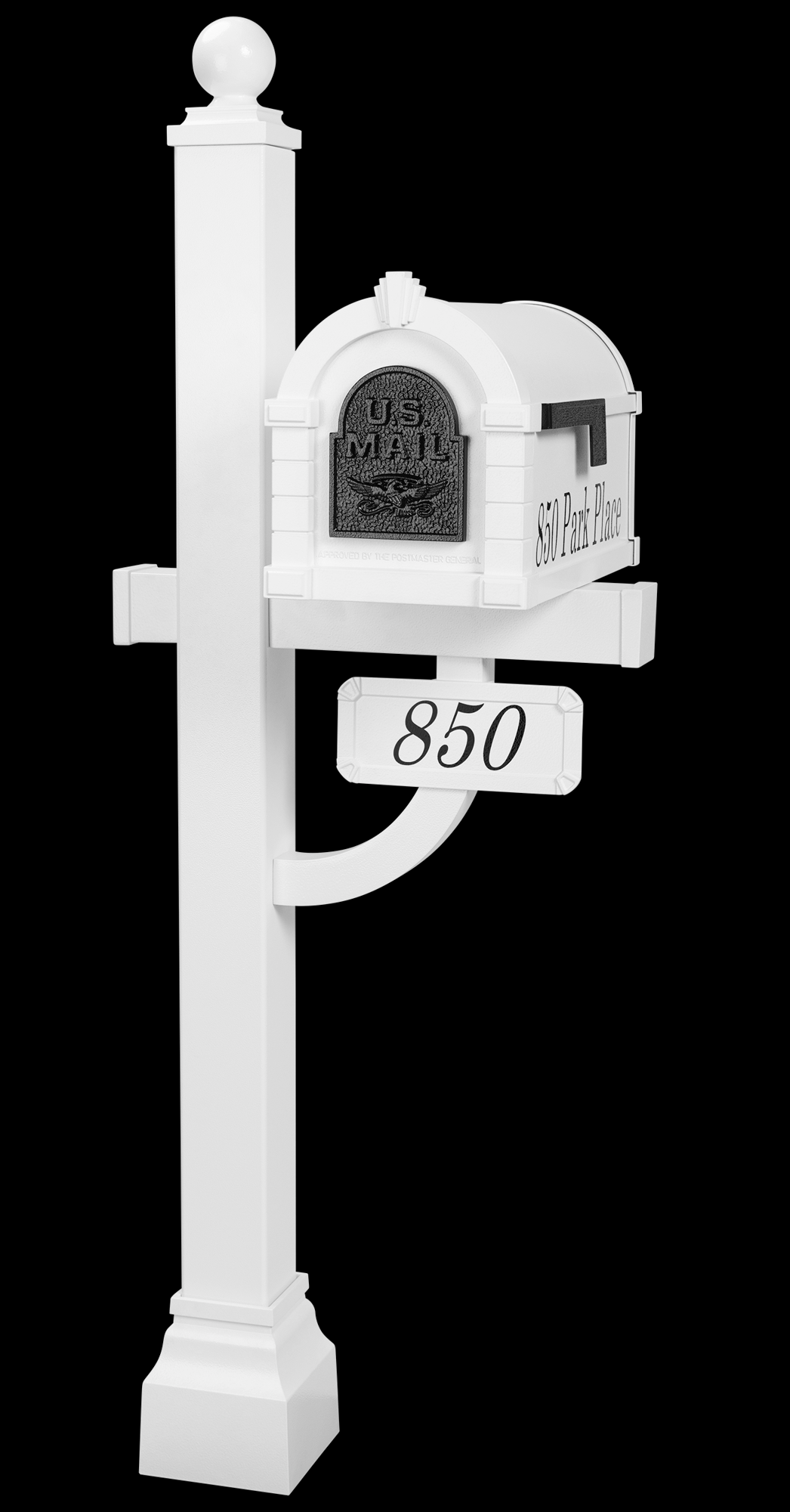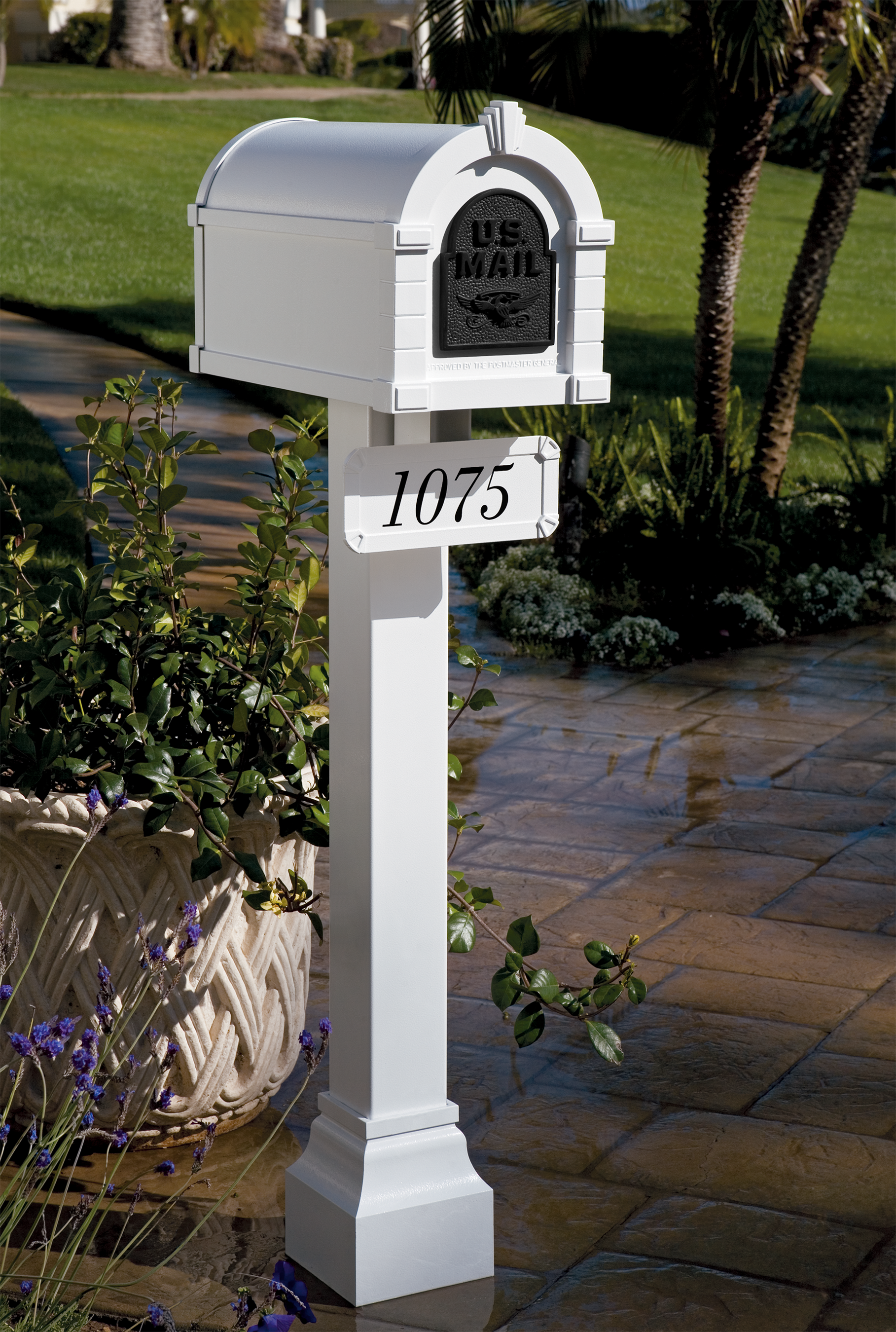 Make a statement with the Limited Edition Keystone Mailbox. This exclusive design features a crisp white finish accented with your choice of a striking black plaque: