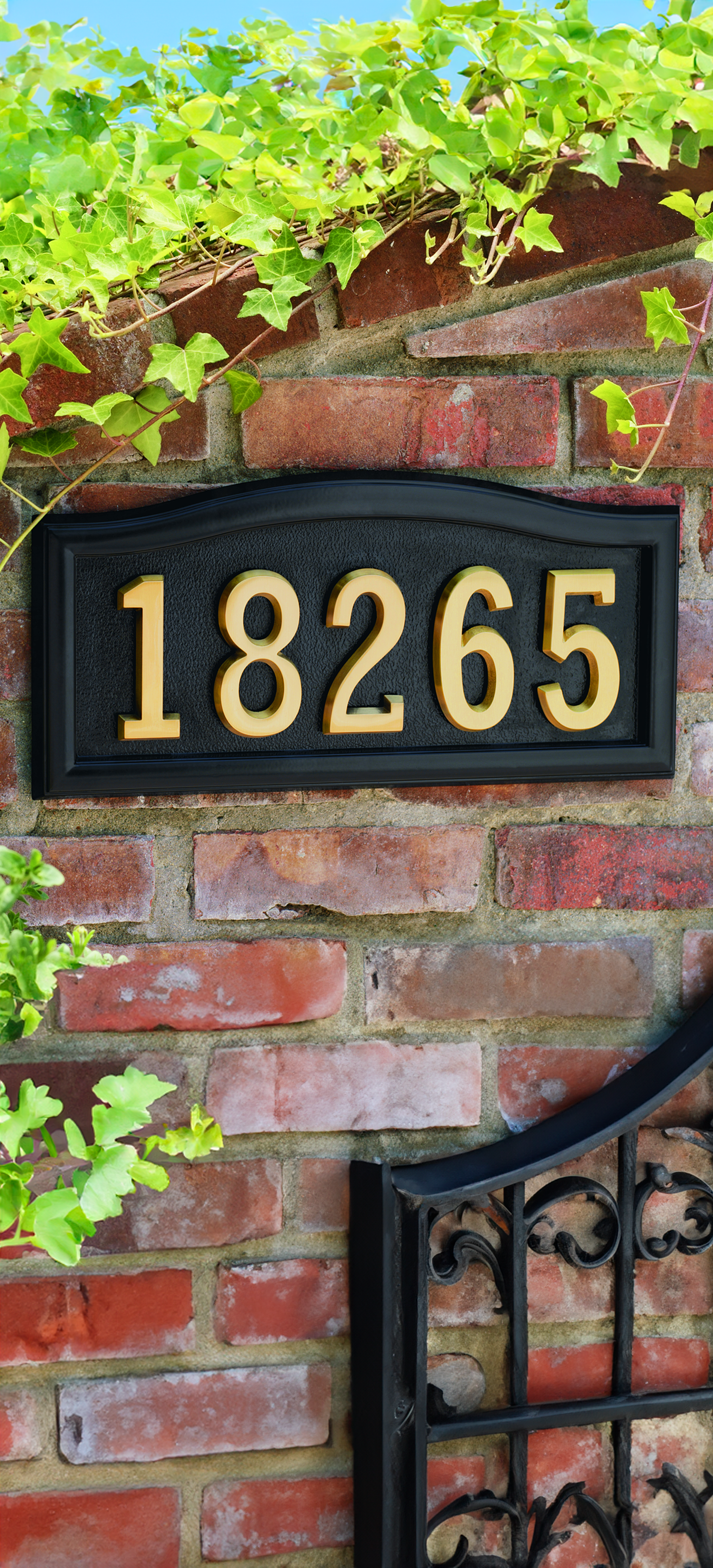The SoftCurve® address plaque transcends mere practicality. Its gracefully arched silhouette and lustrous finish embody a timeless elegance that complements the finest homes and businesses. Choose from a curated palette of three rich colors to perfectly match your exterior aesthetic: