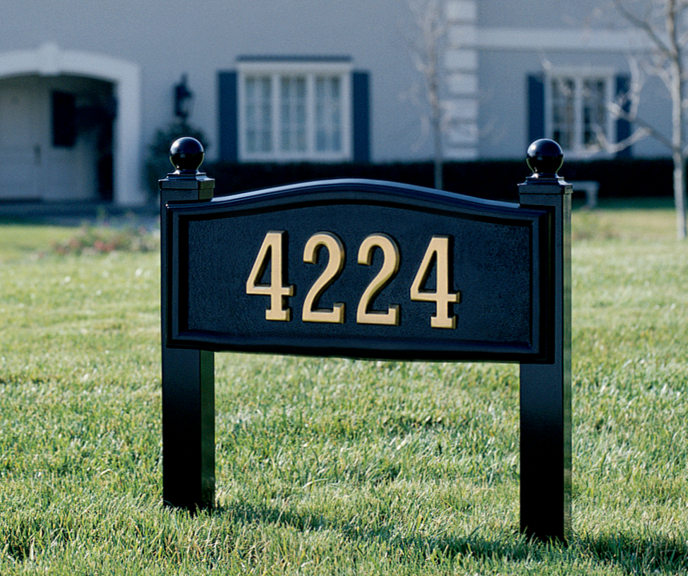 The SoftCurve® address plaque embodies a timeless elegance, and when paired with a stately post kit, its beauty is further elevated. This combination delivers a commanding presence that enhances the overall curb appeal of your property.