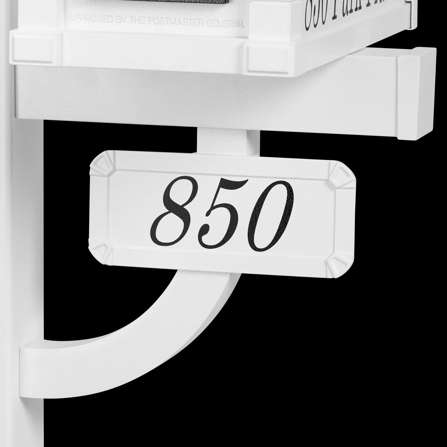 Keystone Series Address Plaque - White powder coat finish. Cast aluminum construction. Mounting hardware included. Each Address Plaque can be personalized with up to seven characters.
